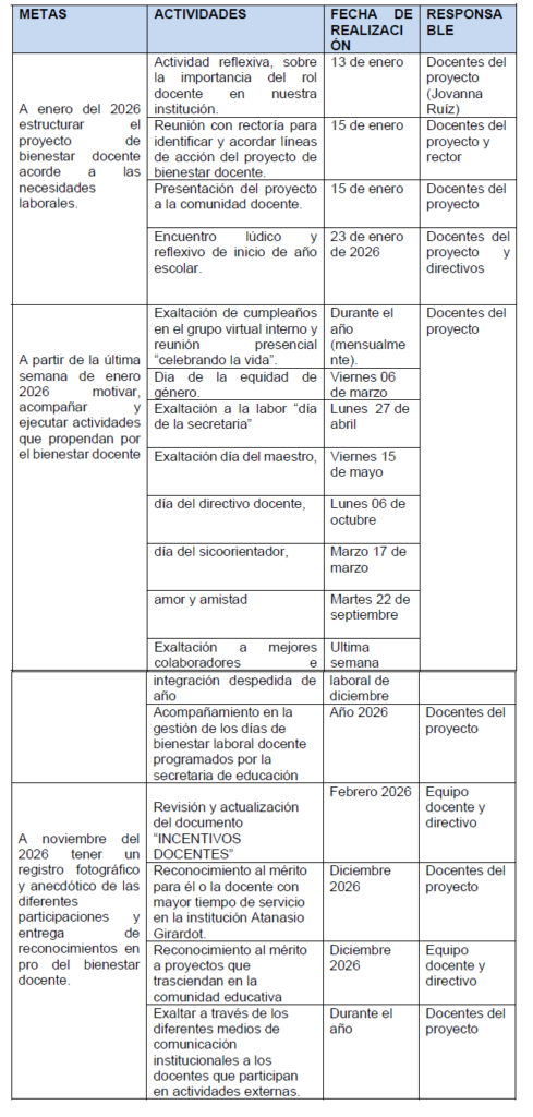 - Fomentar el bienestar laboral motivando a cada uno de los docentes y directivos, en la apropiación de actividades que permitan mejorar el sentido de pertenencia institucional.