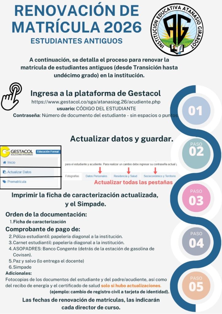 Enlace para ingresar a actualizar: GESTACOL SOFTWARE – INSTITUCIÓN EDUCATIVA ATANASIO GIRARDOT